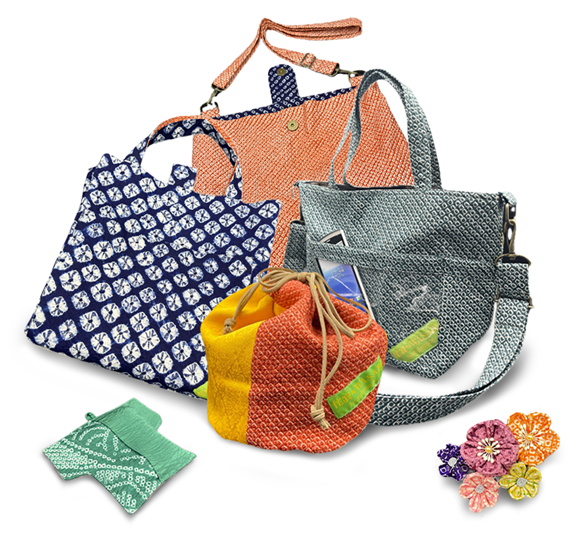 着物であったものを解いて生地にしたものや永く箪笥に保管されていた古き良き時代の材料を使用して作られた、和装でも洋装でもフィットするオールマイティなバッグが登場しました。