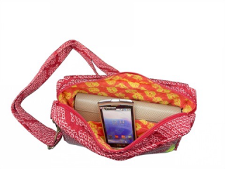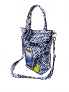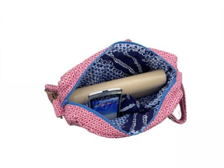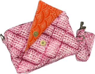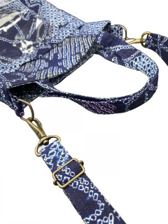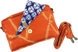 生地は、和装の絹、絞り、浴衣生地の綿などを材料にしています。 絹や絞りでありながら、しっかりとした装いになる様、又水分の浸透を防ぐ為に内部には船に使用される帆布を縫い込んであります。 バッグの中に入れたままでもスマートフォンを操作できる便利な収納スペースもあります。熟練の職人が一点一点心を込めてお届けします。 古き良き時代の日本の香りも一緒にお届けできる逸品です。